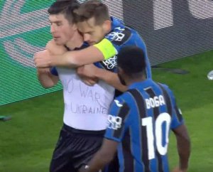 Після одного з голів Руслан підняв футболку, а на майці було написано "Ні війні в Україні".
