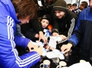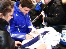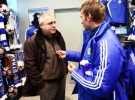 Останнім залишає магазин Мілевський. Вболівальники запитують капітана чи засмутився він вильотом "Шахтаря" від "Фулхема".