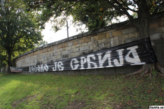У день матчу Україна — Косово у Кракові вивісили банер з написами "Polski Lwow" і "Косово је Србија". Полотно розтягнули між стовбурами дерев біля Вісли поблизу Вавеля. Банер добре можна розглянути з оглядових майданчиків Королівського замку. Після обіду його не було на місці.