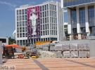 "Та от доробляємо фасад. До понеділка закінчимо, не переживайте. Ми тут у три зміни працюємо. Докладаємо плитку і будемо переробляти трохи бруківку. Щоб, знаєте, не стидно було перед Європою, як кажуть", - розповідають робочі.