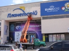 Справа від стадіону в бежевий колір дофарбовують Планетарій.