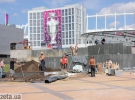 На столичному стадіоні "Євро-2012" перший футбольний матч відбудеться вже в понеділок. Зіграють команда України та команда Швеції. Але сьогодні, в п'ятницю, 8 червня, за три дні до матчу перед "Олімпійським" ще тривають роботи.