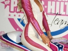 Презентація проходила в Мадриді. Перед об'єктивами фотокамер спадкоємиця імперії з'явилася в білому облягаючому комбінезоні і показала глибоке декольте.