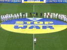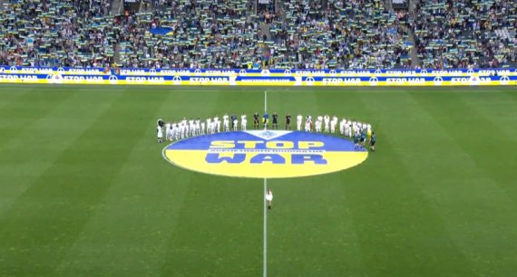 Гімн України перед зустріччю виконала Христина Соловій. Дехто з глядачів на трибунах не зміг стримати сльози... Після цього всі футболісти сфотографувалися з банером "Stop war" ("Зупиніть війну"). А стартовий свисток дав український рефері Денис Шурман.
