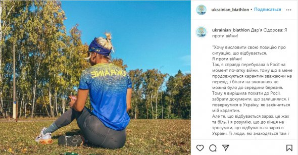 Під постом від імені Дар'ї Сидорової в Instagram ukrainian_biathlon висловилися Валерія Дмитренко та Юлія Городна.
