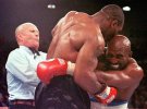 У 3-му раунді Тайсон відкусив від правого вуха Холіфілда шматок хряща і виплюнув його на ринг. Неймовірно, але бій не зупинили. Тайсон втратив 2 очки, доки не опинився знову в клінчі з Холіфілдом і вкусив його за ліве вухо. Зараз вони друзі.
