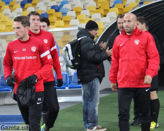 Спортивний директор швейцарців Андрес Гербер смачно гриз велике зелене яблуко. Незважаючи на досить прохолодну погоду колишній капітан "Туна" не побоявся вийти на поле у клубному костюмі. Захисник грав проти "Динамо" у 2005-му році, коли швейцарці сенсаційно вибили киян з Ліги чемпіонів. При згадці про ті матчі Гербер розпливається у посмішці.