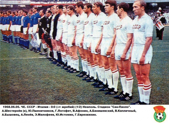 СРСР випало грати в першому півфіналі із господарями – збірною Італії. У ті часи дозволялося міняти лише воротаря. Тому, коли в другому таймі травмувався Рівера, господарі залишилися вдесятьох. Радянські газети, до речі, рідко згадували про цей факт. Маючи чисельну перевагу, збірна СРСР не змогла дотиснути італійців ні в основний, ні в додатковий час. Пенальті ще не били. Переможця мав визначити жереб. У кімнату, де відбувалося жеребкування, таємно пробрався тренер збірної СРСР Михайло Якушин. Мали кидати десятифранкову монету. Якушин, який знався на іграх у гроші помітив, що вона була занадто випуклою з одного боку. Почав кричати капітану збірної СРСР Альберту Шестерньову: – Обирай "фігуру".