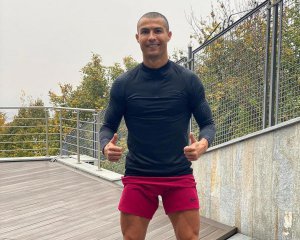 Футболіст займається у тренажерній залі, обладнаній у нього вдома. Судячи з відео, яким поділився Роналду, настрій у нього прекрасний, як і самопочуття.