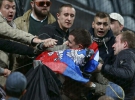 Втім, інші вболівальники, які приїхали до Швеції підтримати збірну Росії, завадили молодику розгорнути прапор. Поєдинок між командами завершився із нічийним рахунком - 1:1.