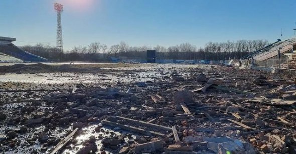 "Вже втретє (!!!) москальскі окупанти обстріляли найбільш небезпечний у місті військовий інфраструктурний об'єкт – стадіон нашої рідної команди.