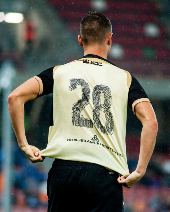 Ще упродовж першого тайму деякі гравці "Рубіна" "губили" букви на задніх частинах футболок. Ближче до перерви амуніція розвалилася остаточно, і персоналу казанців довелося компенсувати пропуски маркером. Арбітр Жоау Пінейру креатив не оцінив – росіян не пускали на поле, допоки їхня форма не набуде нормального вигляду.