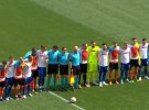 На футбольне поле донецька команда вийшла у спеціальних футболках з написом "Збережіть Маріуполь" (Save Mariupol) і нагадуванням про Азовсталь, яку нещадно бомбардує ворожа авіація. Після виконання гімнів учасники матчу вшанували хвилиною мовчання пам'ять загиблих українців.