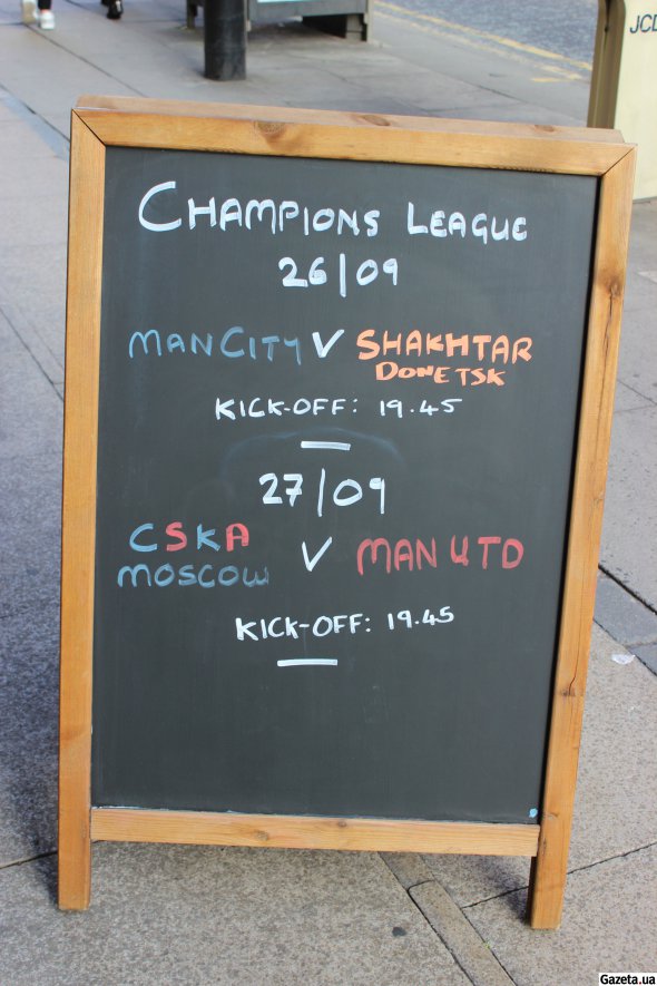 Місцеві паби анонсують трансляцію сьогоднішнього матчу. А завтра свій поєдинок зіграє "Манчестер Юнайтед" з московським ЦСКА.