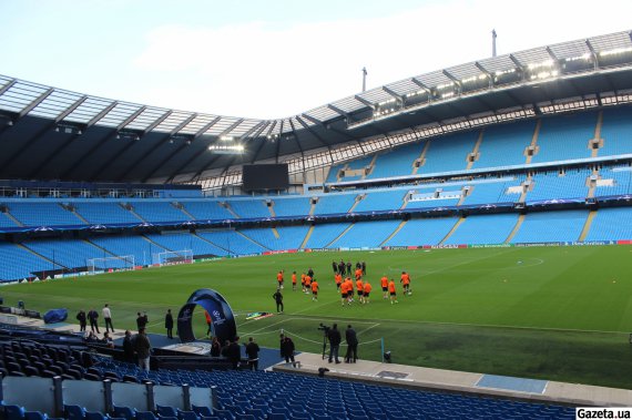 Донецький "Шахтар" провів тренування на стадіоні "Манчестер Сіті" напередодні матчу Ліги чемпіонів проти "городян". Перші 15 хвилин сесії були відкриті для журналістів.