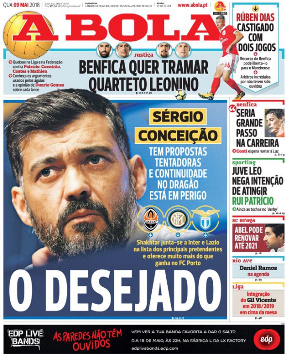 Португальська газета A Bola, поділилася інформацією про можливого наступника Фонсеки. "Гірники", як "Інтер" і "Лаціо", зацікавлені в послугах головного тренера "Порту" Сержіу Консейсау і пропонують йому більш вигідні фінансові умови, ніж дають "дракони".