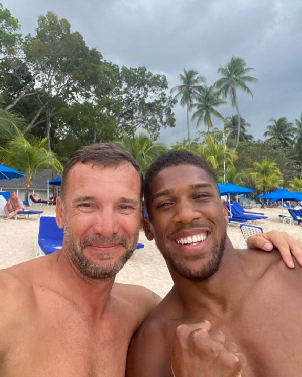 Наставник збірної України Андрій Шевченко під час свого відпочинку на Барбадосі зустрівся з чемпіоном світу в суперважкій вазі Ентоні Джошуа.