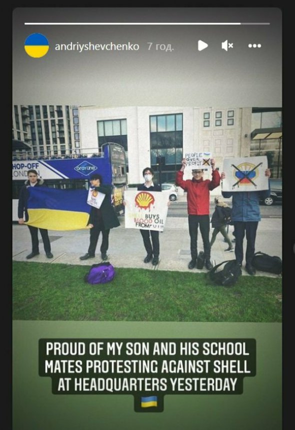 "Пишаюся своїм сином та його однокласниками, які протестували біля управління "Shell" учора", – написав Шевченко в Instagram.