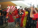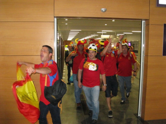 Треба сказати, що євро-фанів очікувалося приблизно в 5 разів більше. Новий міжнародний термінал в Донецьку здатний приймати 3100 пасажирів на годину. І число персоналу в донецькому аеропорту після його повної після реконструкції зросла в 4 рази.