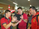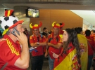 В аеропорту вболівальників зустрічали так же поліцейські з Іспанії та Франції. Французький полісмен Бенджамін днями відсвяткував у Донецьку свій 33 день народження. Каже, що отримав від українських колег у подарунок сувеніри, торт і вітальну адресу французькою мовою.