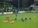 Правда під кінець матчу українські вболівальники запалили файєри і кілька з них кинули на поле. Тимощук погасив один із них і жестами намагався заспокоїти фанів. Мабуть, не дуже подіяло, оскільки палаючі фаєри продовжили летіти у бік воріт П'ятова.