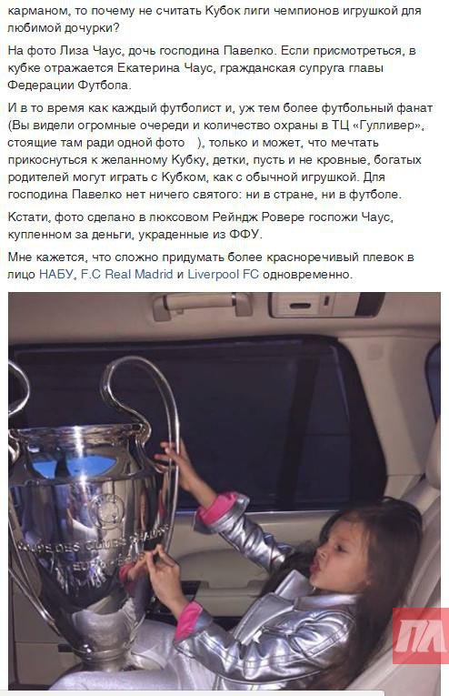 Слід зазначити, що користувачі в подиві: чому хтось повинен був стояти добу в черзі, щоб зробити фотографію з кубком, тоді як діти українських футбольних чиновників можуть просто гратися з ним.