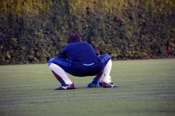 Не менш зосередженим виглядав ветеран і голкіпер команди Олександр Шовковський. Настільки, що навіть, усамітнившись від усіх, приймав "позу жаби" і про щось розмірковував.