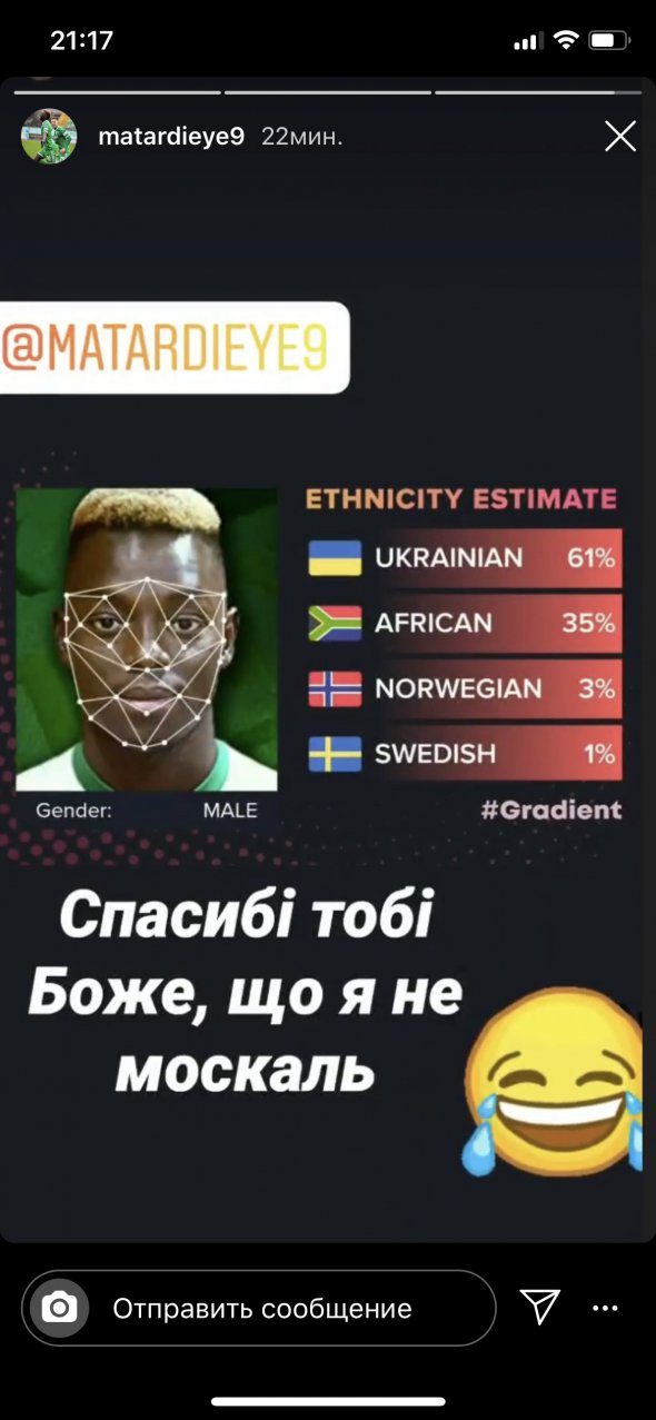 Сенегальський легіонер львівських "Карпат" Матар Діає завдяки популярному мобільному додатку Gradient визначив свою національність.