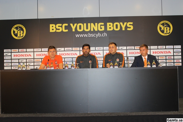 На прес-конференцію Фонсека взяв із собою центрального захисника Сергія Кривцова. Послухати представників "Шахтаря" прийшов один швейцарський журналіст. Перекладачка персонально тлумачила йому відповіді Фонсеки та Кривцова.