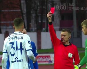 Український захисник у чемпіонату Білорусі проти "Вітебська" "привіз" пенальті у власні ворота, отримав червону карту та намагався вдарити у підтрибунному приміщенні головного арбітра Сергія Честова.