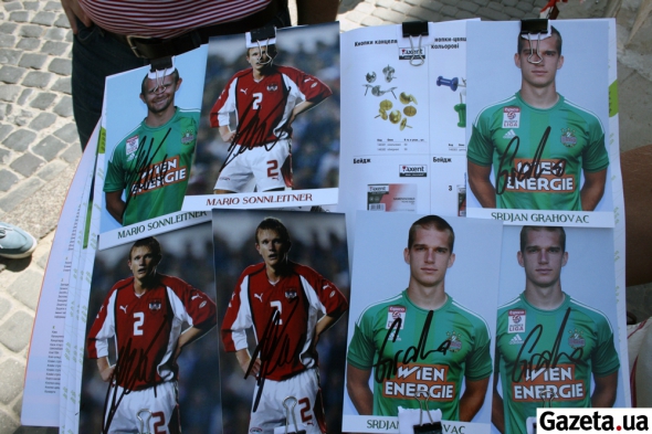"Фани "Рапіду"? Лише клубу "Карпати" та збірної України. Ось збираємо автографи на продаж. Кому продати? Тому дурню, який захоче це купити", - жартує львів'янин Андрій.