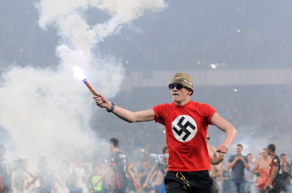 Фінал Кубка України на НСК "Олімпійський" закінчився неприємним інцидентом. Після завершення обов'язкових п'яти ударів в післяматчевій серії пенальті, коли рахунок став 3:3, кілька фанатів "Динамо" не стримали емоцій і вибігли на бігові доріжки. Через якийсь час їх вдалося повернути на свої місця.
