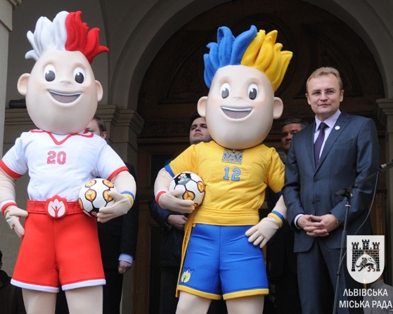 У суботу, 20 листопада, у Львові презентували офіційні талісмани Євро-2012. Ними стали два чоловіки-близнюки. Один - у жовто-блакитній футбольній формі, інший - у червоно-білій.
