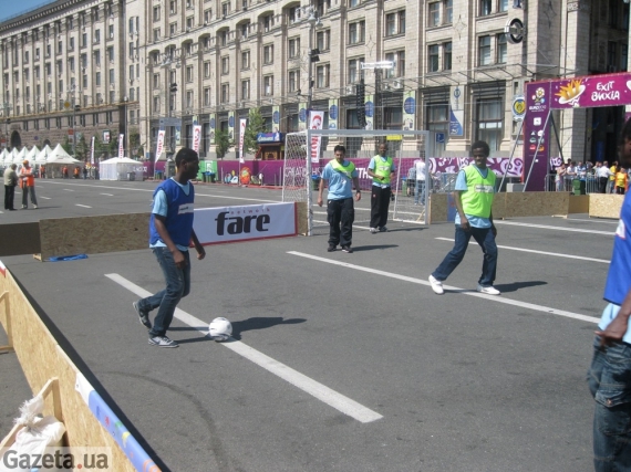 Близько 11:00 сьогодні чорношкірі хлопці грали в футбол посеред Майдану Незалежності на території київської фан-зони Євро-2012.