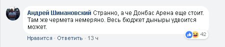 Цю ситуацію влучно прокоментував один з дописувачів: "Дивно, а чого Донбас Арена ще стоїть. Там же чормета неміряно. Весь бюджет динири подвоїться може".