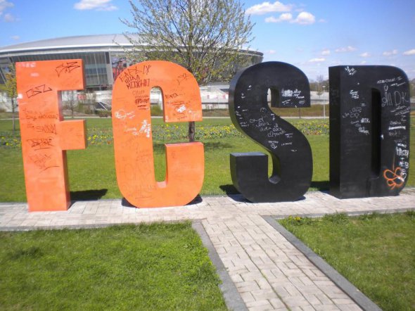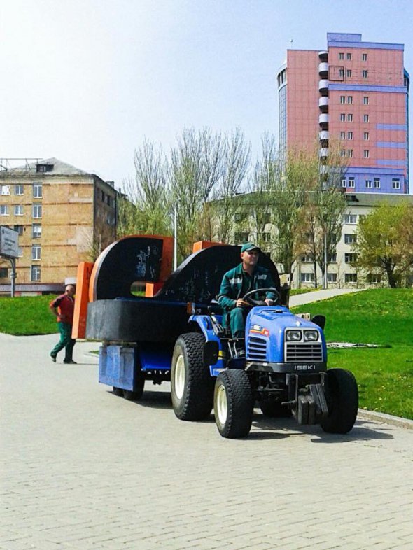 Аби хоч якось поживитися, місцеві бандити вирішили зрізати і вивезти стелу ФК "Шахтар", яка стояла біля "Донбас Арени". Про це повідомляє блогер Денис Казанський.