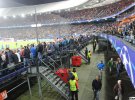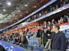 На стадіоні немає жодного вільного місця. Більшість глядачів весь матч стоять ногами на своїх сидіннях. Багато фанатів курять