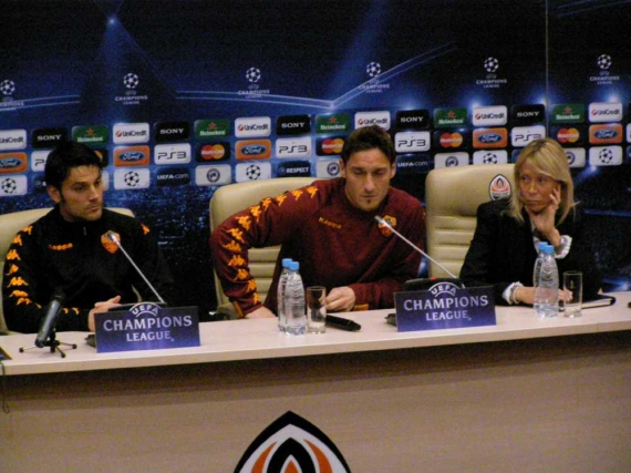 Традиційна передматчева прес-конференція наставника "Роми" Вінченцо Монтелли та капітана команди Франческо Тотті більше нагадувала зустріч двох друзів. Екс-партнери хвалили один одного та багато жартували. А ще обіцяли зробити все можливе, щоб перемогти "Шахтар". Нагадаємо, у Римі "гірники" перемогли з рахунком 3:2.