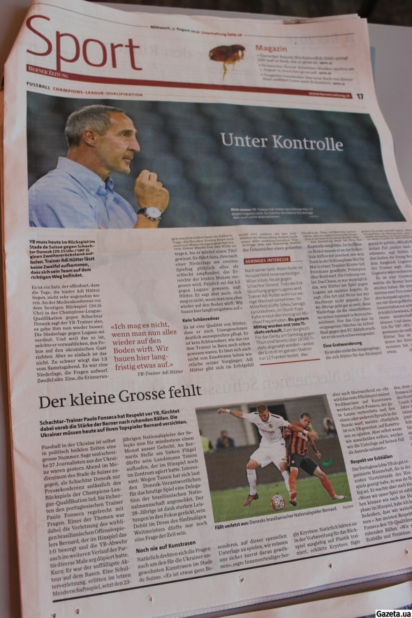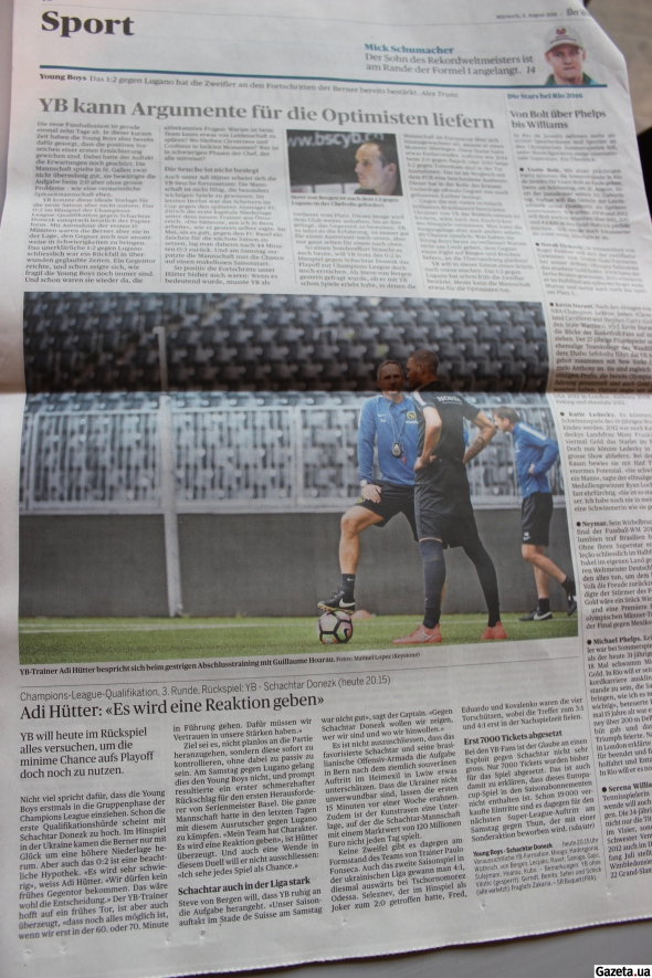 Газета "Der Bund" та "BZ Berner Zeitung" процитували передматчеву прес-конференцію Аді Хюттера та розмістили фото наставника. Також у центрі уваги швейцарських журналістів нападник Гійом Оаро, який є лідером атаки "Янг Бойз".