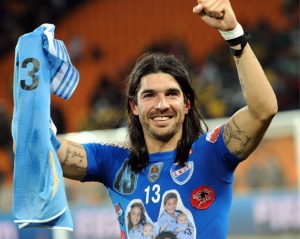 Себастьян Абреу надів під ігрову форму футболку, на яку були нанесені емблеми його колишніх клубів - "Ботафого" і уругвайського "Насьонала", а також фотографії його дітей.