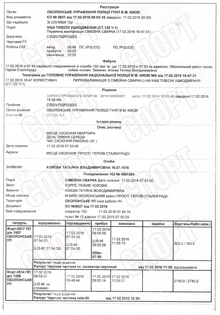 "Близько 6.00 мій чоловік, перебуваючи в стані сильного алкогольного сп'яніння, без причин влаштував скандал, почав бігати по квартирі, кричати, нецензурно висловлювався, забіг в кімнату дітей, почав там кричати і вчинив стосовно наших дітей психологічне і моральне насильство.