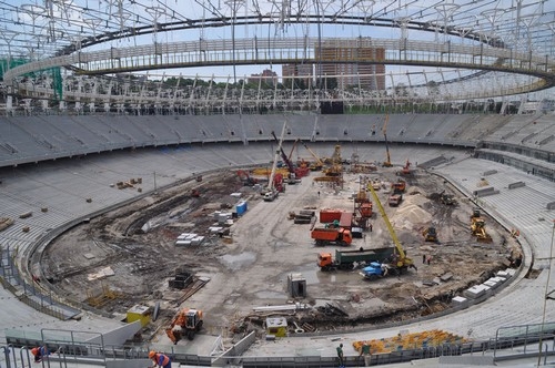 Нагадаємо, паралельно на арені ведуться роботи з монтажу мембрани, встановлення поля, легкоатлетичних доріжок та влаштування сидінь для глядачів.