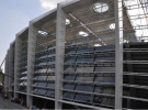 На головній спортивній арені України – НСК "Олімпійський" триває скління фасадних конструкцій. Роботи ведуться по всьому периметру стадіону, повідомляє прес-служба НСК.