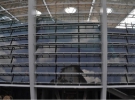 Скляний пакет складається з двох поверхонь (кожна товщиною в вісім міліметрів). Між ними вклеєна спеціальна плівка, яка фільтрує до 95% шкідливого ультрафіолетового випромінювання. Для запобігання прогинання скла на кожному секторі встановлюються спеціальні тросові розтяжки.