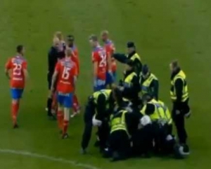 Матч чемпіонату Швеції з футболу між "Мальме" та "Хельсінгборгом" був перерваний через напад уболівальника на воротаря "Хельсінгборга" Пера Ханссона, який в 2011 році дебютував у складі національної команди. Про це повідомляє Associated Press.
