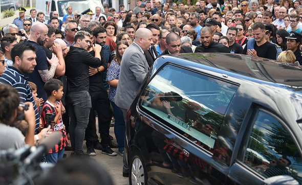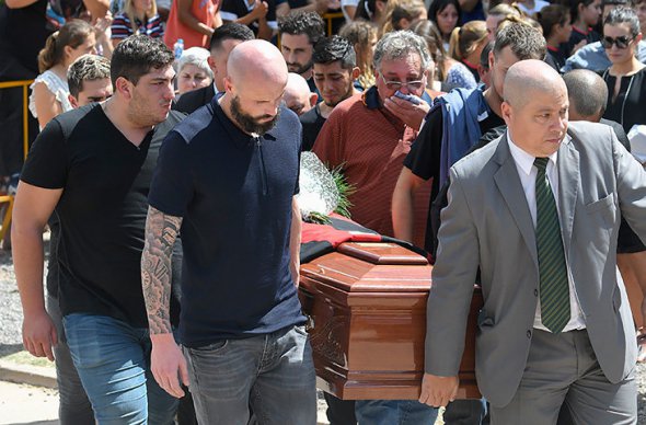 Труну з тілом гравця несли футболіст "Нанта" Ніколя Паллуа (з бородою), брат Еміліано Даріо Сала (в центрі, в синіх кросівках) і батько гравця Хорацио Сала (в червоній футболці).