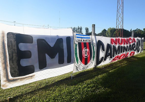 Банер "Емі" висить перед будівлями клубу "Сан Мартін де Прогресо" - першої команди Сали.