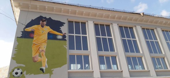 Мурал розташований на стіні ДЮСШ "Юність" в Чернігові, де починав займатися футболом гравець "Вест Гема", повідомляє "Суспільне Чернігів"