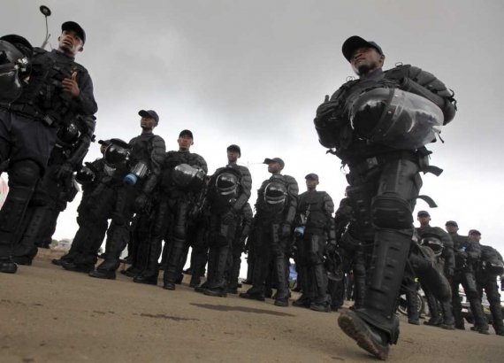 Щоб потрапити на територію комплексу транспортні засоби мали пройти через велетенський детектор металу. Всередині за порядком слідкували озброєнні до зубів патрульні поліцейські з собаками.