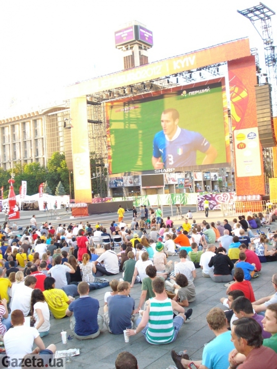 Загалом під час матчу Італія-Хорватія більшість глядачів біля великих екранів на Майдані Незалежності мали символіку української збірної. Де-не-де можна було впізнати прихильників Італії через їхній одяг або символіку. Ще рідше в київській фан-зоні зустрічалися люди з кольорами хорватської збірної.